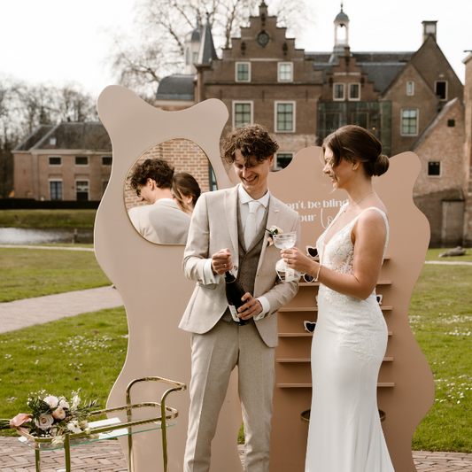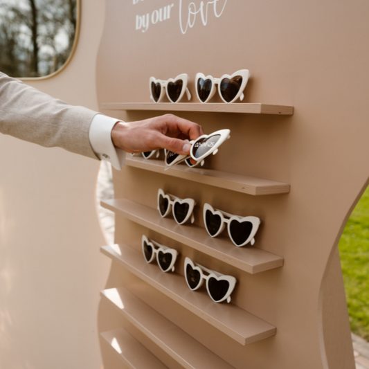 Geef jouw bruiloft nét dat beetje extra met onze houten displays. Perfect voor het presenteren van (bedrukte) zonnebrillen, fancy welkomstdrankjes, bedankjes en meer op jouw speciale dag! Of wat dacht je van een snackwand met daarin jullie favoriete snacks voor alle gasten?! Creëer eenvoudig een gastvrije sfeer waar nog lang over nagepraat gaat worden met onze prachtige displays.