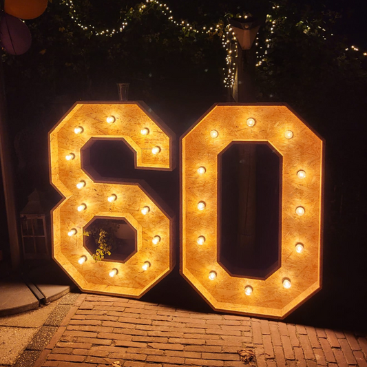 Onze houten letters en cijfers zijn met 120 cm dé eyecatcher op jouw bruiloft, party of event! De letters zijn voorzien van warm LED-licht en verkrijgbaar in de letters A t/m Z, de cijfers 0 t/m 9 en het '&' en '#'-symbool. De letters kunnen binnen en buiten geplaatst worden. Kies je voor 2D of 3D? Aan jou de keuze!