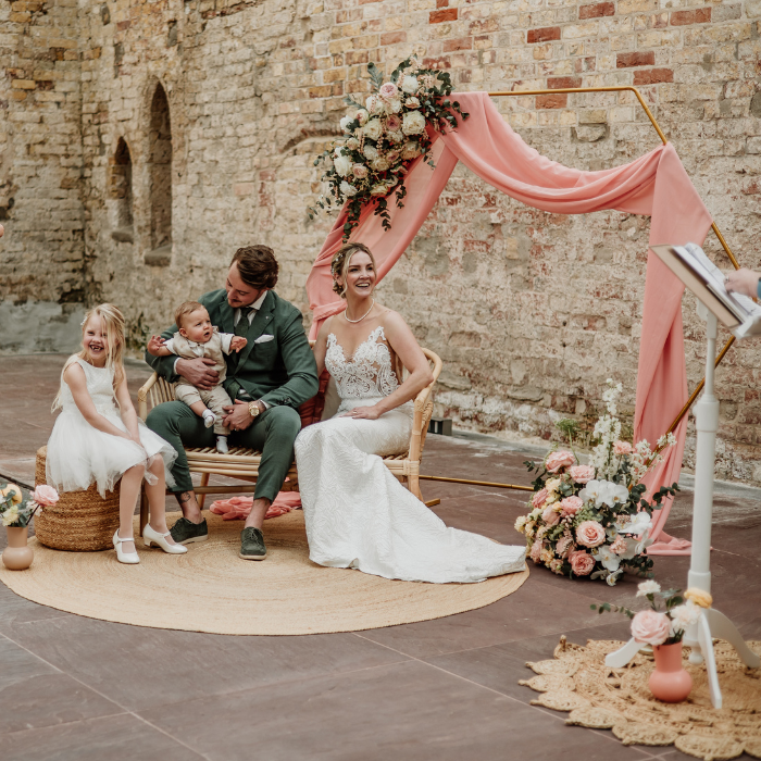 Een mooie gouden backdrop frame in hexagon vorm. Een ware eyecatcher voor jullie ceremonie, verjaardag of babyshower. Exclusief decoratie.