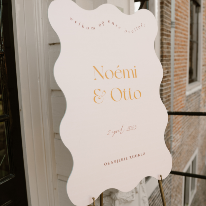 Schildersezels zijn een musthave voor je bruiloft! Deze gouden schildersezel geeft je welkomstbord een mooi, chique voetstuk. Kleed hem aan met wat bloemen, wat lantaarns en/of groen. De perfecte aanwinst voor je bruiloft of event.